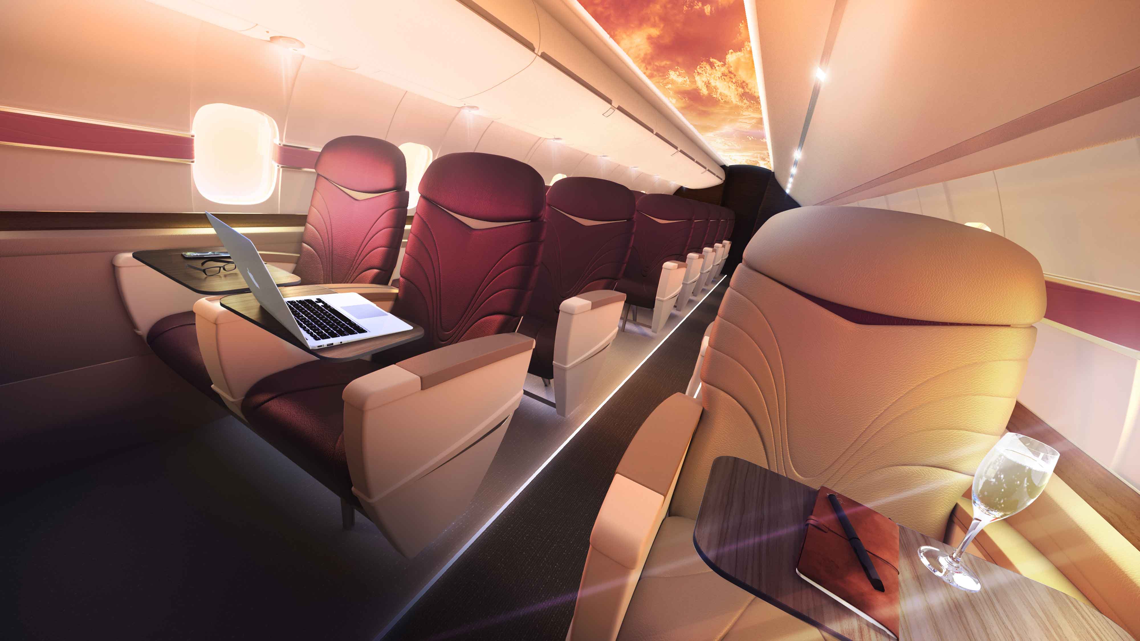 The signature WAVE cabin features the revolutionary zero-gravity AÏANAWAVE seat, designed by YASAVA Solutions with research from aero-medical sciences and sleep psychology. The seat features a mattress design of superior thickness and optimized reclines for multiple body positions that allow for better circulation, improved breathing, and a reduction of the dangers of DVT.
