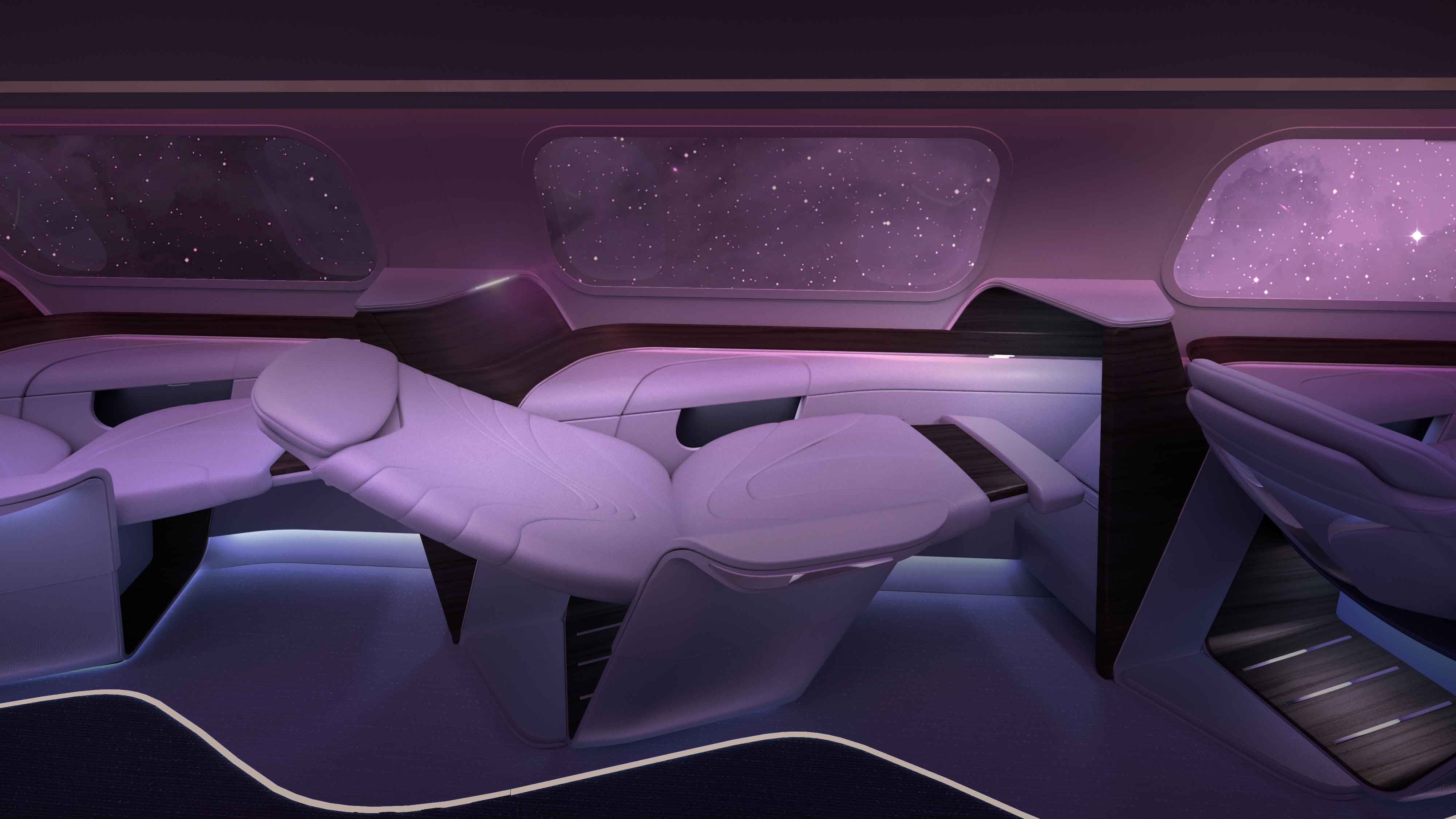 WAVE is the pinnacle of the AURA experience featuring custom Swiss-designed zero-gravity AÏANAWAVE seats in a 1-1 configuration. Additionally, WAVE guests have access to the largest window in the sky, a layer of transparent OLED connecting two windows together.