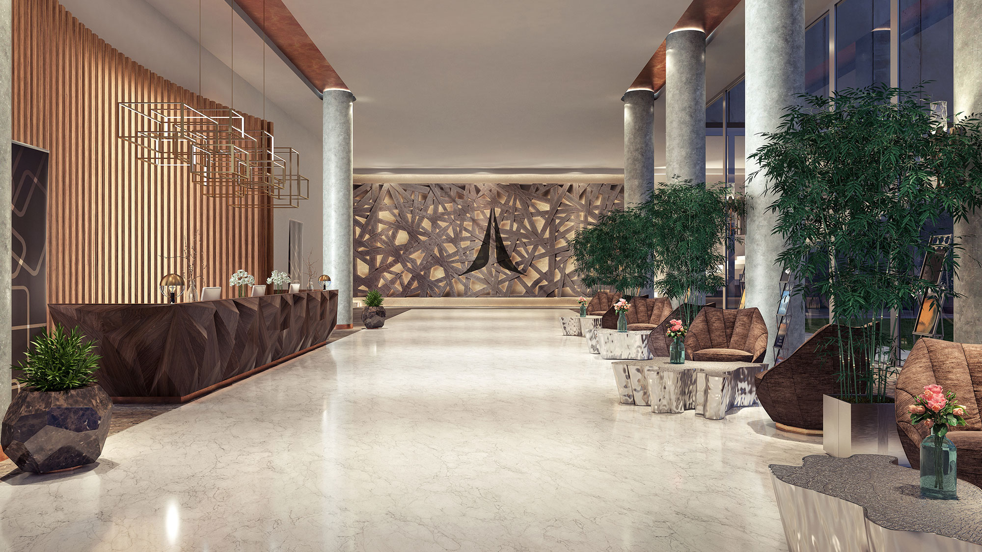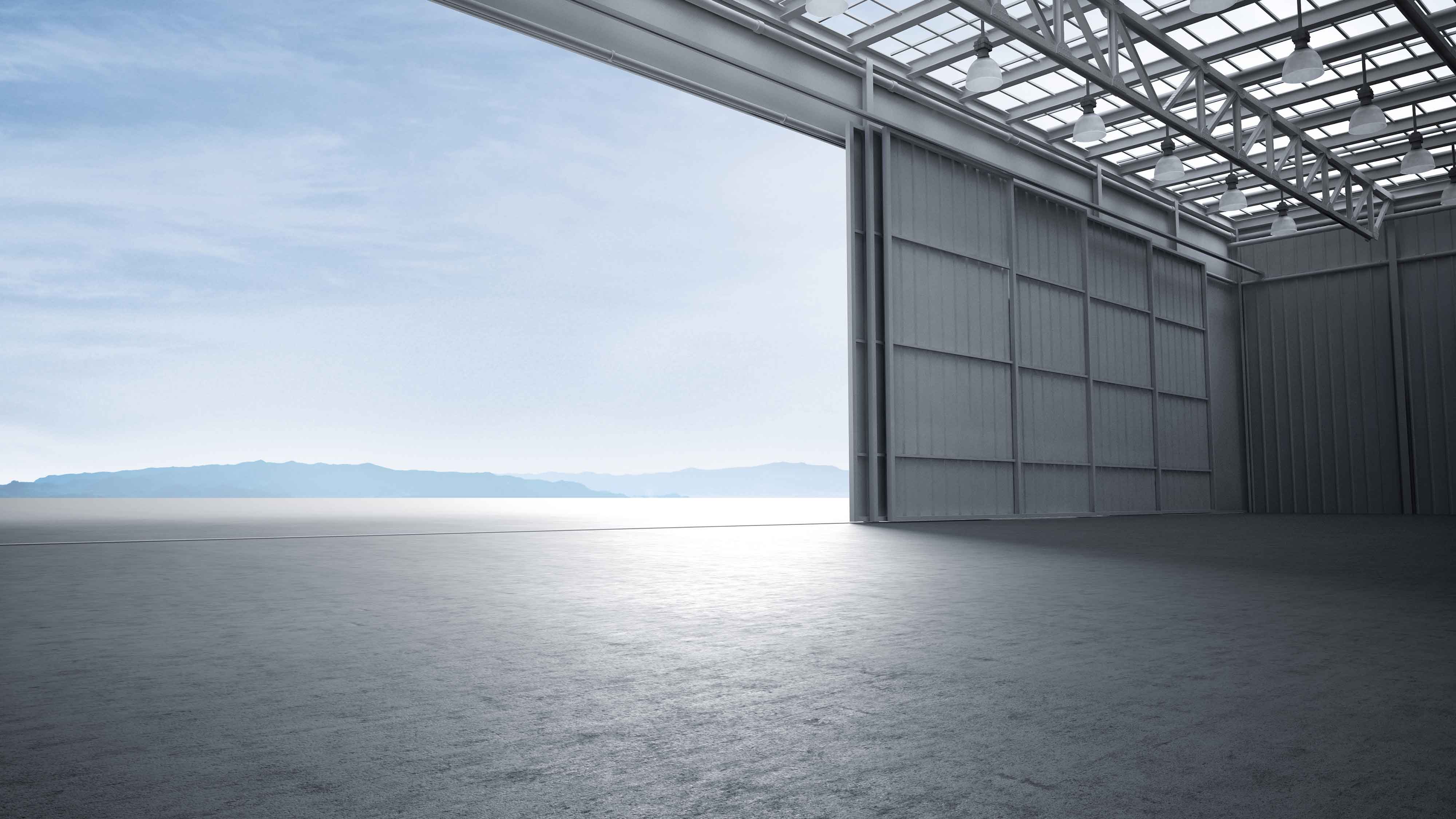A private hangar houses aircraft. AURA’s private hangar will include amenities provided by FBOs include customer lounges and a comprehensive suite of business services.